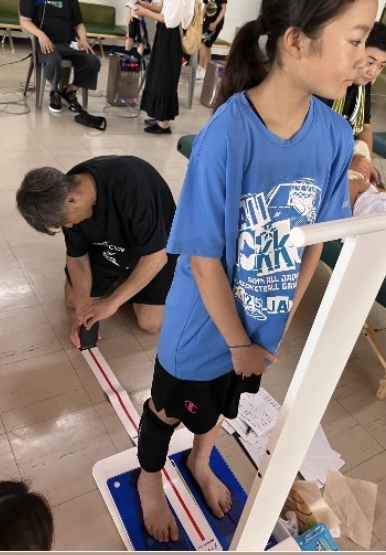 検査は握力や大腿四頭筋の出力等の簡単なものから、足底アーチ、足関節の傾きアライメント検査を専門の道具を使い行いました。